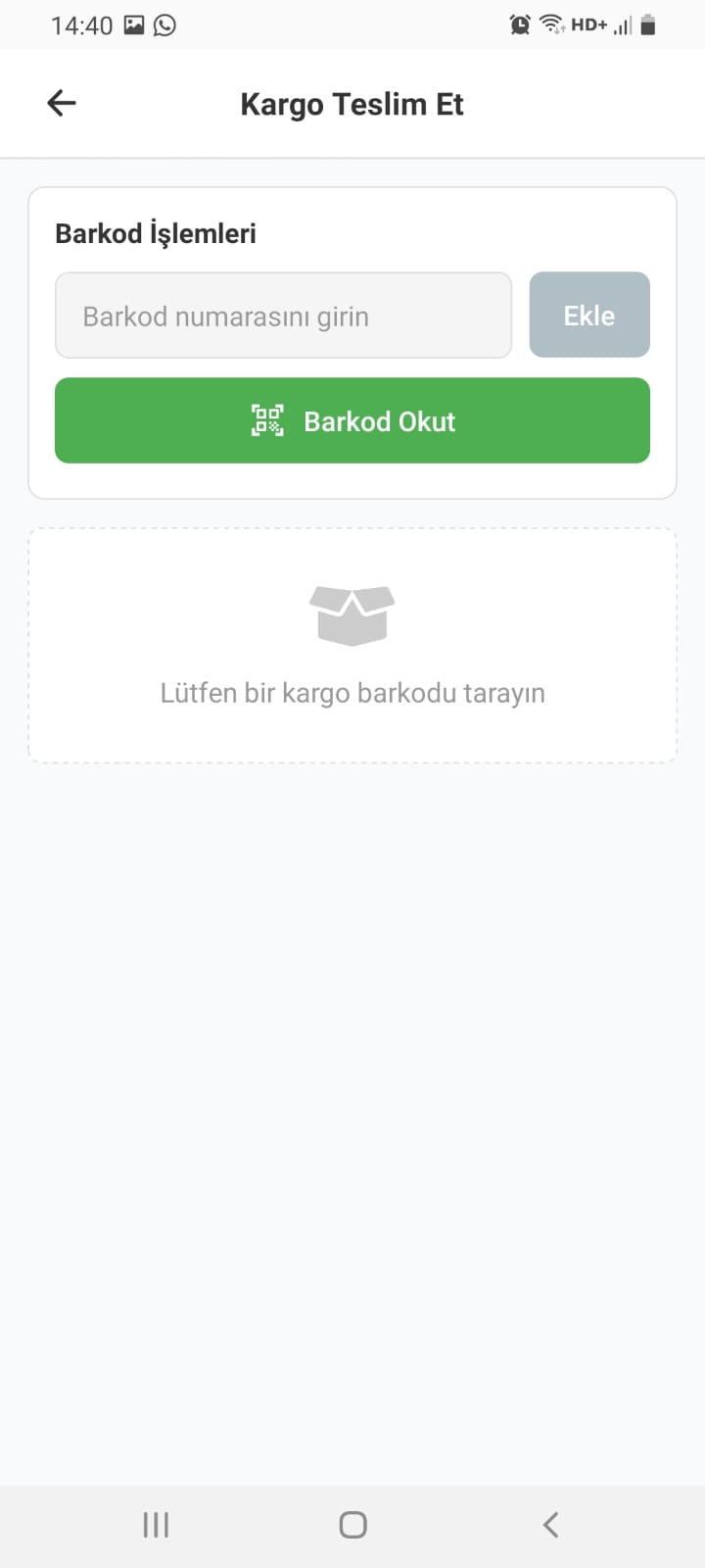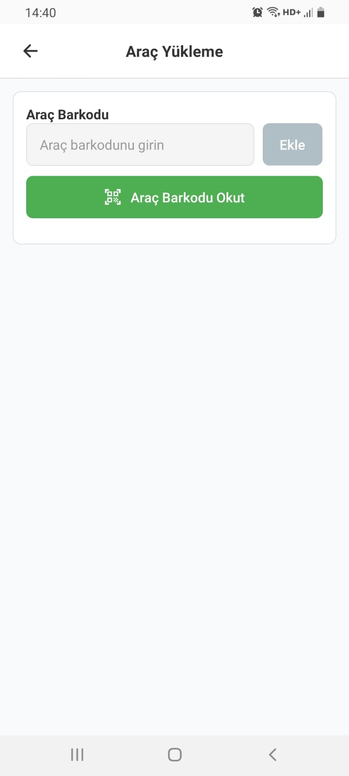Dönüşte Araç Barkodu’nu gir ya da Araç Barkodu Okut → Ekle.