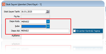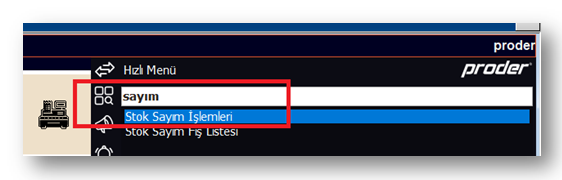 Sayım işlemlerini gerçekleştirebilmek için aşağıda belirtilen herhangi bir erişim linkinden stok sayım işlemleri ekranını açınız.