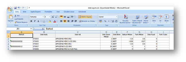 Önemli Not : kursörokuma modunda olmamalıdır. Yapıştırma modunda olduğu zaman yapıştırma işlemini yapınız aksihalde tüm stokları tek hücreye atacaktır.